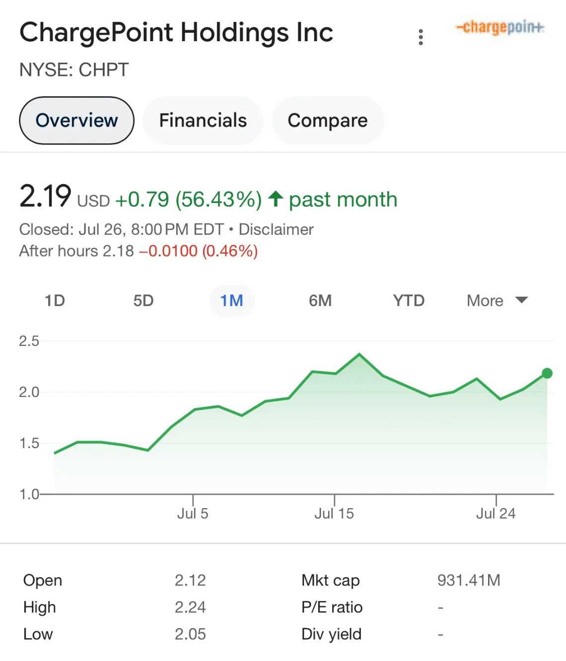 VW-RIVN 파트너십 이후 CHPT 주가는 56% 상승